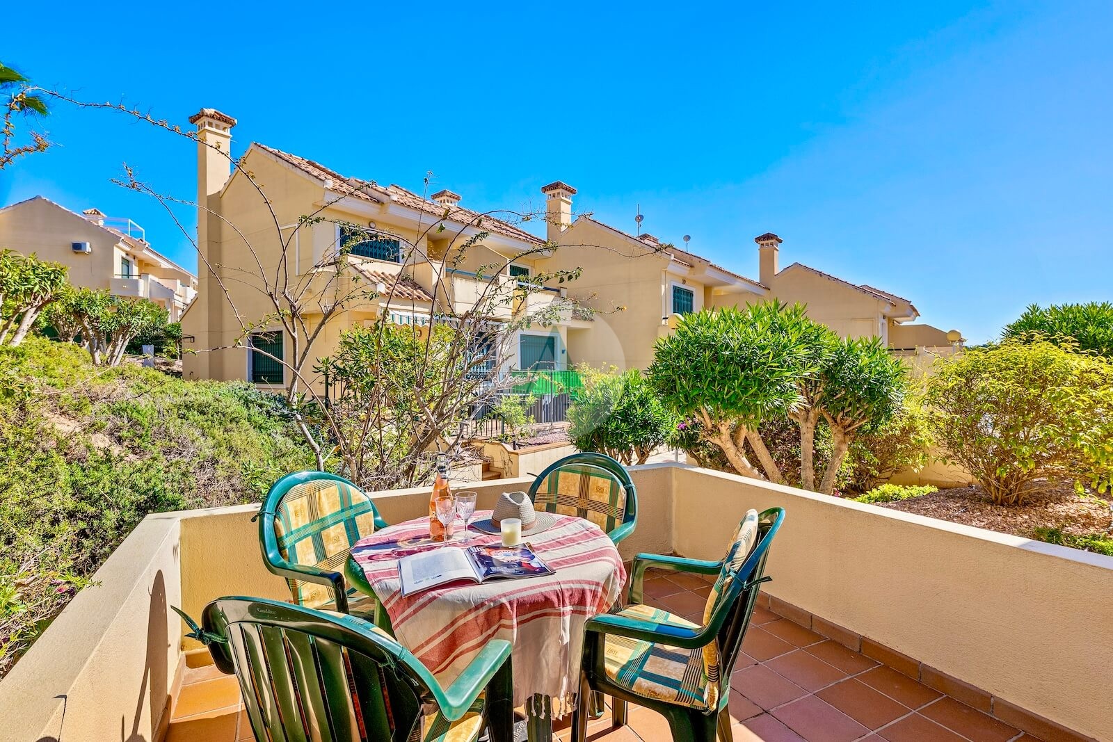 Aan de achterzijde van de woning bevindt nog een ruim terras. Met zowel een voor- als achterterras geniet je hier op elk moment van de dag van zon of schaduw; perfect om optimaal te genieten van het Spaanse buitenleven.