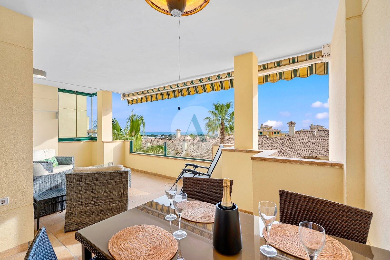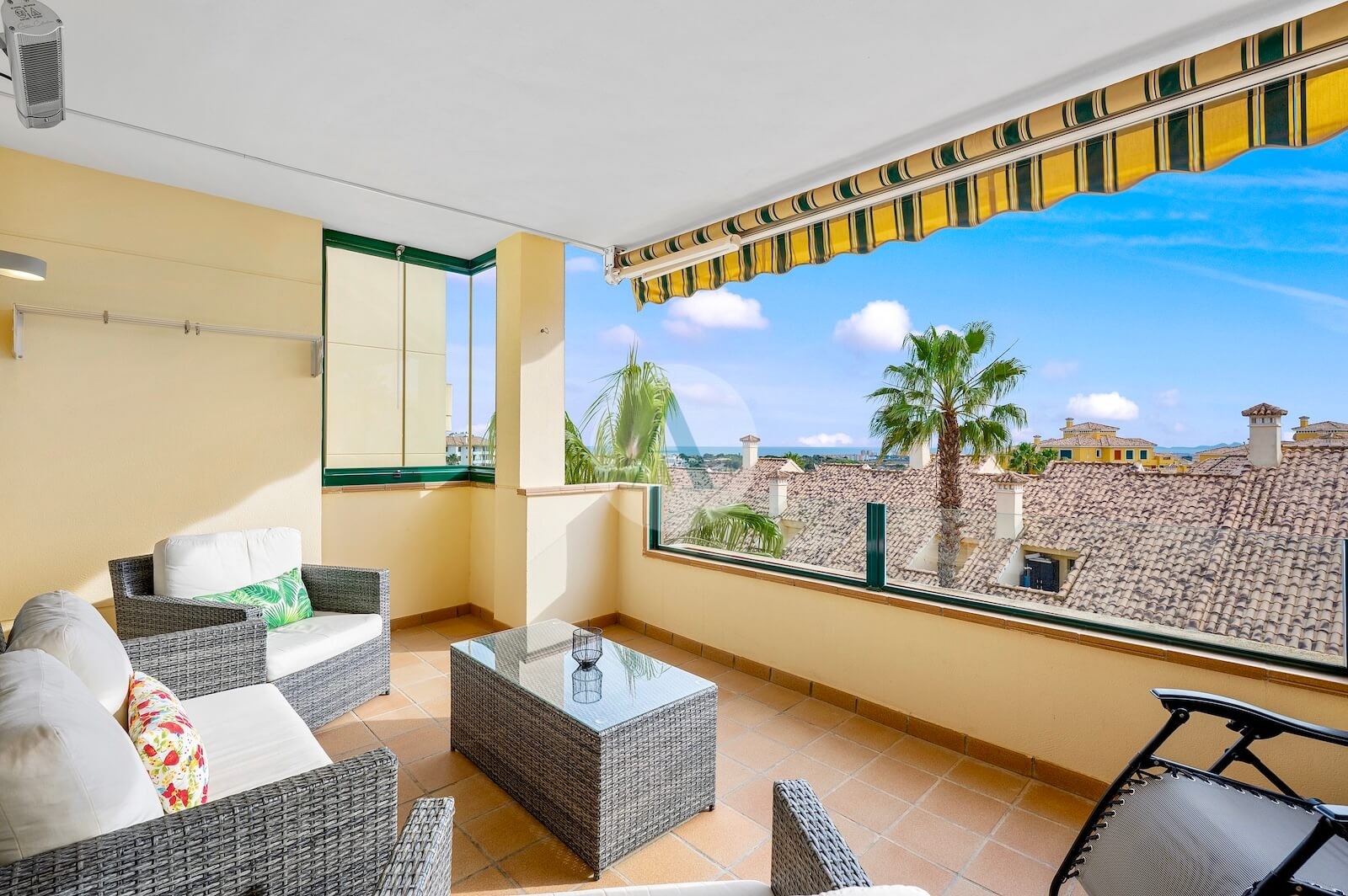 Een van de absolute troeven van dit pand is het zonnige balkon van 23 m², voorzien van een elektrische zonnewering en met een prachtig, vrij uitzicht tot aan de zee. De ideale plek om buiten te dineren, te ontspannen of het hele jaar door te genieten van de mediterrane levensstijl.